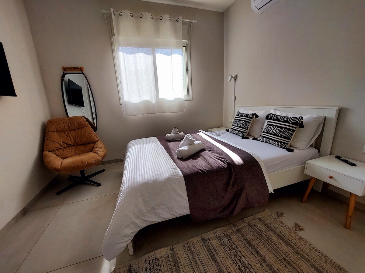 Shadmot Dvoraにある2部屋のコンドミニアムは、専用の玄関とパティオを備えた3ユニットの複合施設の一部です。ジャグジー、スマートテレビ/Netflixを備えた広々とした寝室、設備の整ったキッチン、洗濯機、乾燥機を備えています。 事前の調整によりプールをご利用いただけます。 近くには「Dvorat HaTavor」、乗馬、博物館があります。風景の良いヤブネエル道路を経由してガリラヤ湖からわずか20分。 *注:午後1時以降の当日予約には手動での承認が必要です。「予約リクエスト」を送信してください。