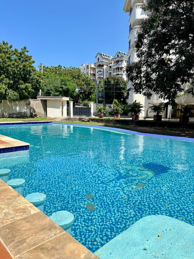 Just 10 minutes from Nyali Beach, 5 minutes from Greenwood Mall, and 6 minutes from Nyali Golf Club, this modern 2-bedroom apartment offers comfort and convenience. It features a master bedroom with a king-size bed and a second bedroom with two single beds. Fully equipped kitchen, free Wi-Fi, Smart TV, balcony, pool, and parking. Public transport nearby. Smoking allowed on the balcony. (Also available as a 3-bedroom option in a separate listing.)