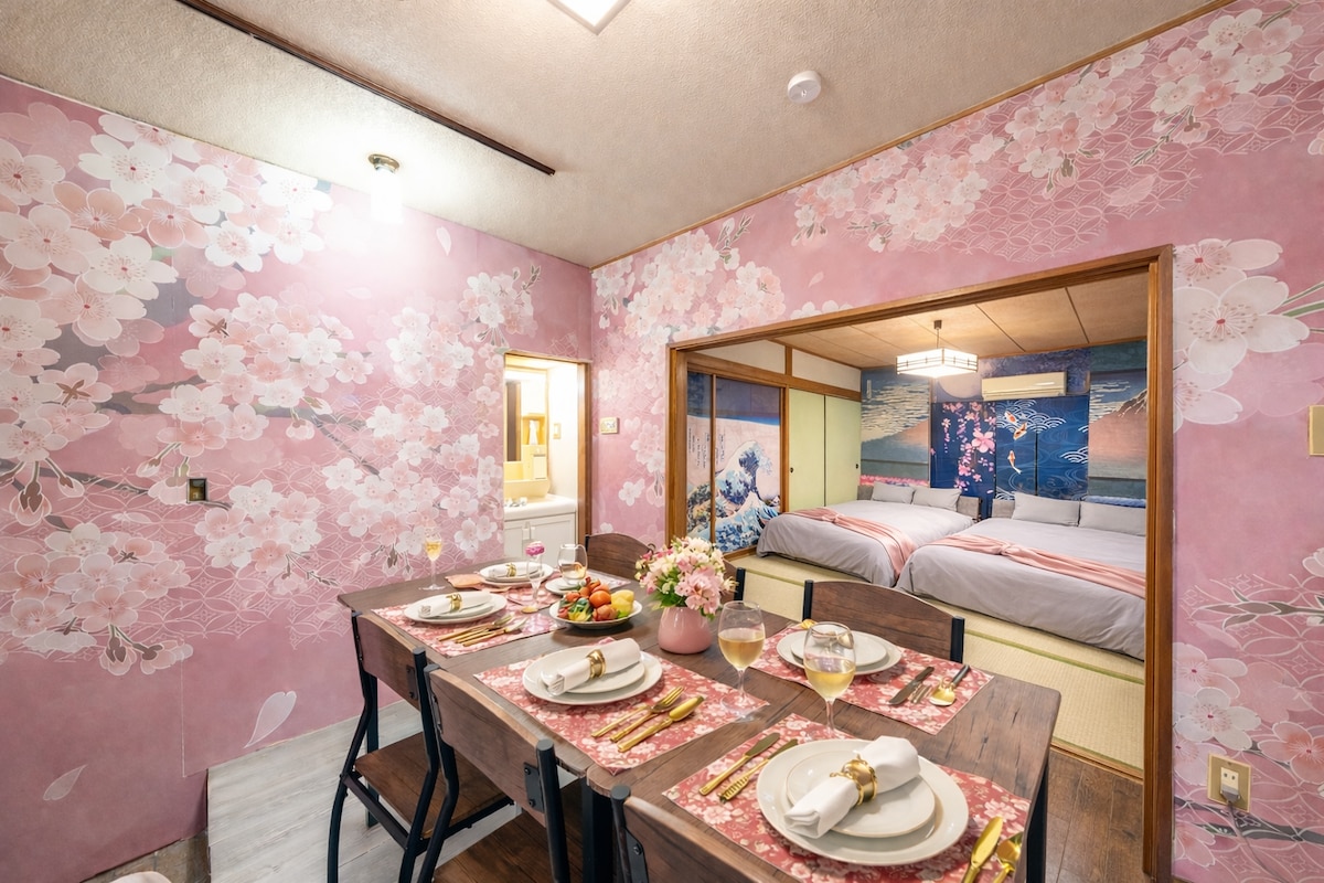 2340inn:池袋商業地区、地下鉄4分、屋上から富士山が見える、55平方メートルの美しいデザイン、和室+リビング、2バスルーム