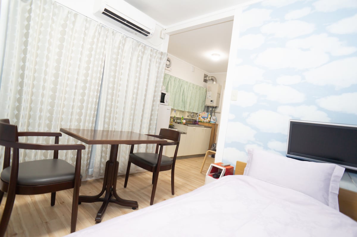 This apartment is second floor and no elevator. But clean and lovely space. Most amenities are provided. 850meters distance from the North exit Hiroshima Station, 900meters from the South exit to our location. There is a convenient small super market about in 2minutes TV is internet TV . AmazonPrimes is signed by BlueHouse ☆The toilet is not a bidet seat ☆After you turn off the lights at night, you can enjoy the view of the luminous walls for a while. ユニットバスで温水トイレではありません。夜は光を蓄える程、蓄光の壁を暫く楽しめます