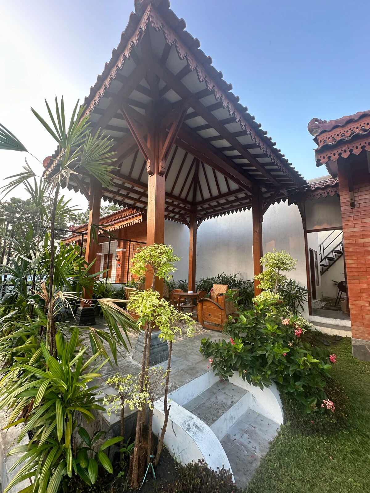 グリヤ・マンダラ・プランバナンは、伝統的なジャワのジョグロ様式のヴィラで、モダンなタッチと組み合わされています。エアコン付きのベッドルームが3部屋、給湯器付きのモダンなバスルームが2部屋、Netflixテレビ、フルキッチンがあります。プランバナン寺院からわずか5分の場所にあるこのヴィラは、イジョ寺院、プラオサン寺院、ラトゥボコ寺院、ブレクシ崖などの歴史的な文化遺産を探索したい方に理想的な選択肢です。