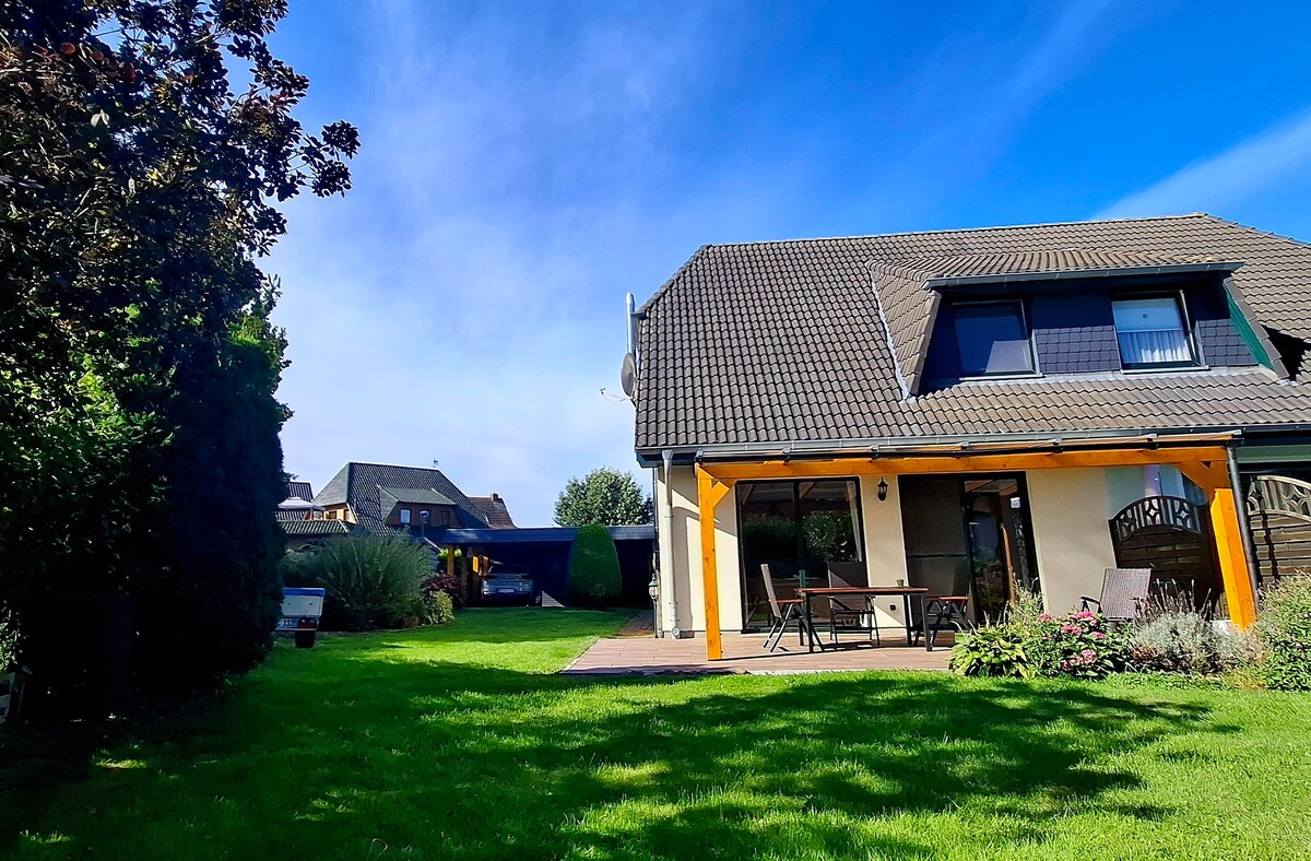 私たちは、ハンザの町ロストック郊外の私たちの家で、4つの部屋と5つのベッド(+ 1ベビーベッド)を備えた84m²の屋根裏部屋を貸しています。クルムンドルフは、小さく美しい村で、街に属しています。家のすぐ後ろにはオルデンドルフのモミの木(小さな森)があり、そのすぐ後ろにはワルノウ川があります。市内中心部とワルネミュンデへはすぐに到着できます。 駐車スペースとバーベキュー(テント)が利用可能です。