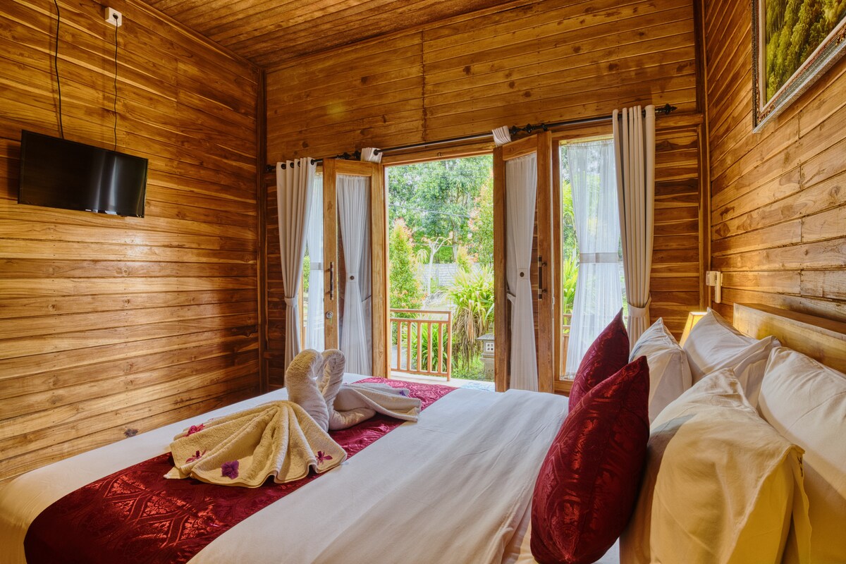 バリ島でジャングルとアグン山の景色を楽しめる居心地の良いホームステイをお探しの場合は、静かで人里離れた場所にあるCegeng Lestari Balinese Guesthouseに滞在することをおすすめします。 ジャングルの景色を望むホームステイには、テラスや庭などの専用の屋外スペースが含まれており、周囲の自然と本物のバリの文化に完全に浸ることができます。