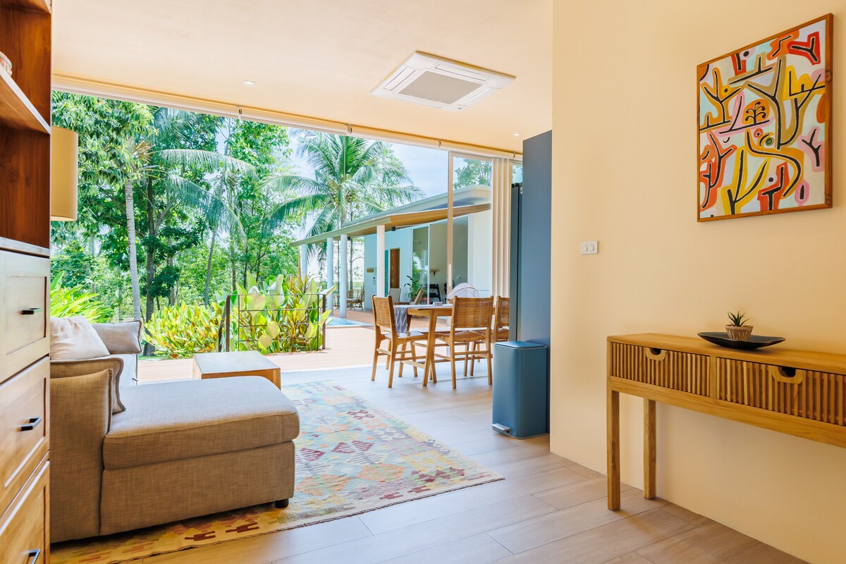 🌿 スタイリッシュな1ベッドルームプールヴィラ|パンガン島 🌿 専用プール、緑豊かな庭、夕日の景色を楽しめるモダンなヴィラに逃避しましょう。 島の真ん中にあり、人気のビーチ、カフェ、レストランから車で約10分です。 広々として🏡スタイリッシュ – 天然木の装飾、居心地の良いキングサイズベッド、フルAC。 🌊 屋外での至福–ハンモックやプールサイドでリラックス。 設備の🍽整ったキッチン–新鮮な地元の果物を調理したり楽しんだりできます。 📶 高速Wi-Fiとワークスペース – リモートワークに最適です。 今すぐ予約して、夢のような島の滞在を!
