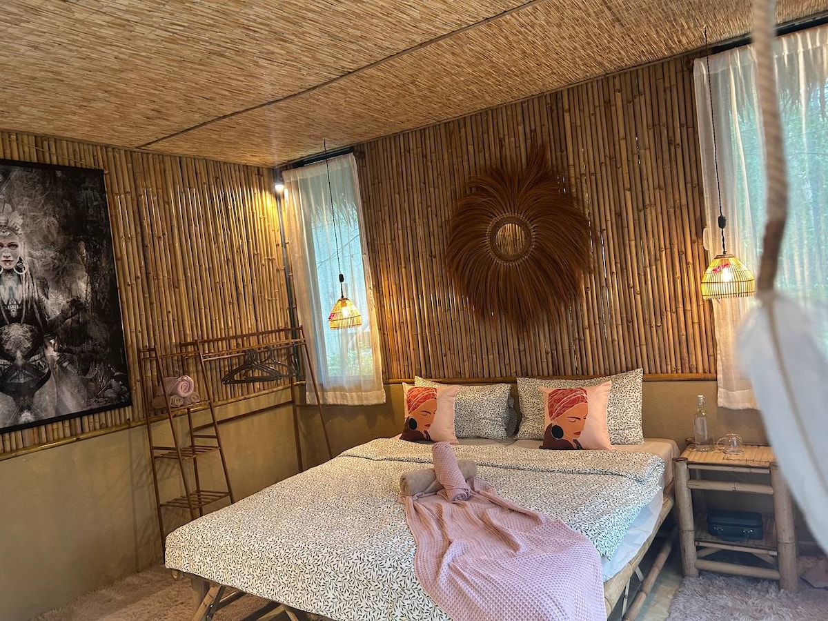 🏠小さな家はBoon Heritage House Guesthouse内にあります。お部屋は自然素材で温かみのあるトーンで装飾されています。トイレ、エアコン、専用バスルーム、快適な寝具、テレビ、冷蔵庫、その他の必需品が備わっており、ゆったりと過ごせます。 このお部屋からは海が直接見えませんが、ゲストは屋外エリアで夕日を眺めることができます。この家は幹線道路沿いにあるため、通行車からの交通騒音が聞こえることがありますのでご注意ください。