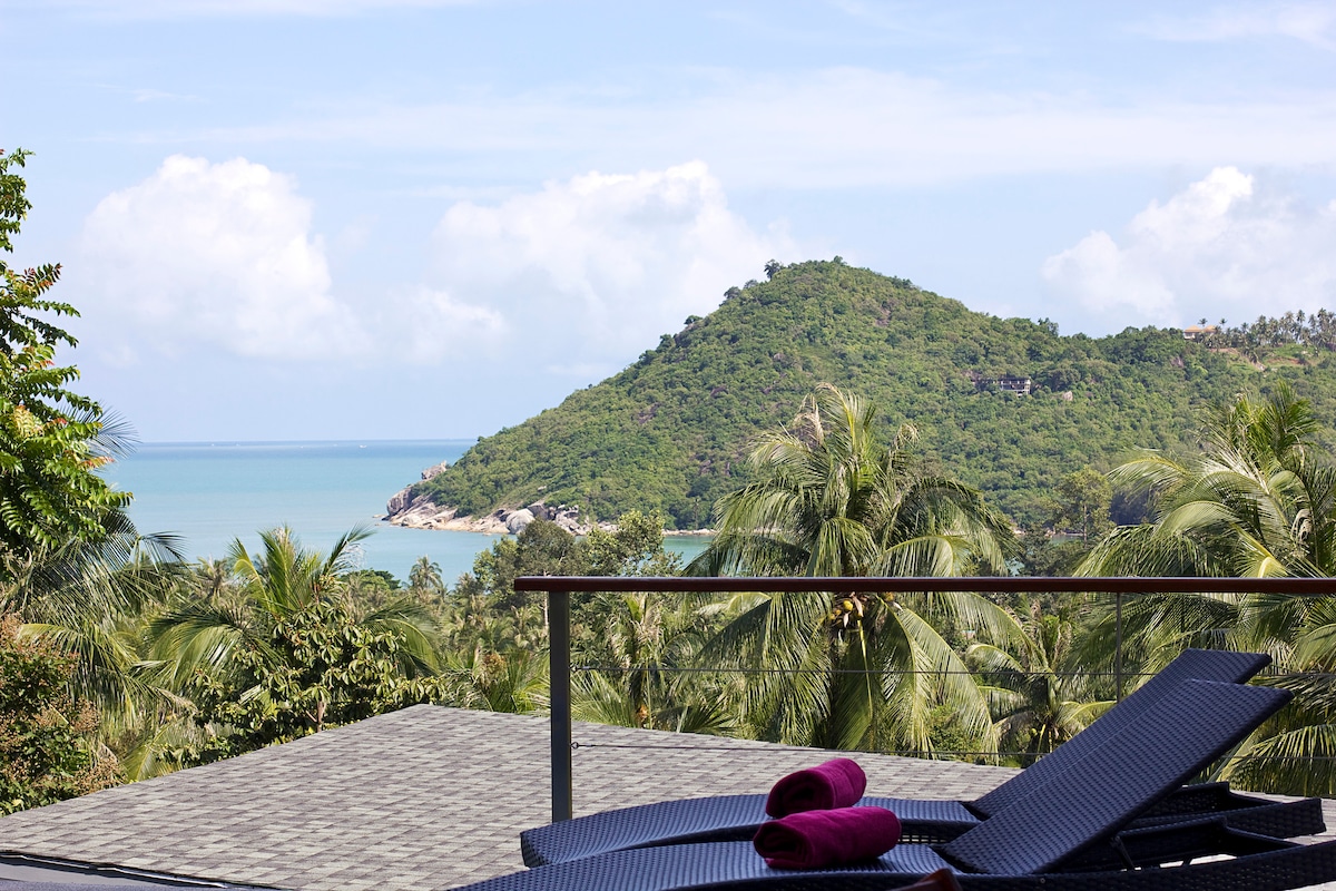 豪華で自然に囲まれたヴィラ、3寝室、専用プール、オーシャンビュー