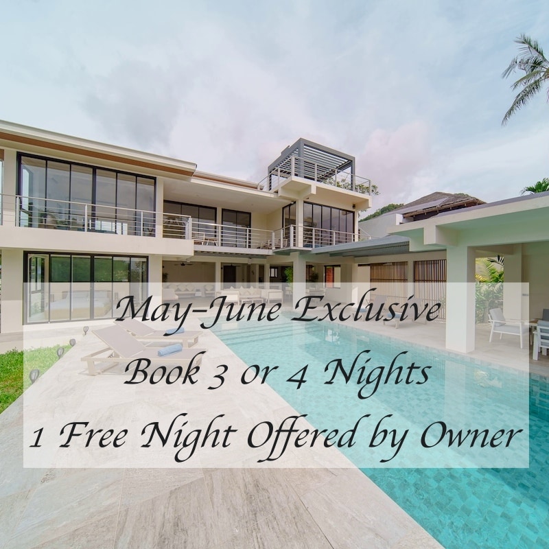 Located close to the beach, our eco-luxury retreat invites you to a harmonious blend of tropical island living with authentic Thai charm. Enjoy wonderful sea views and relax while surrounded by the lush tropical garden and jungle-covered hills. Refresh in the infinity pool, unwind with wellness treatments in our private outdoor massage area, listen to your favorite music on Bluetooth systems, or relax with a movie on Netflix. Experience resort style service with daily housekeeping and breakfast.