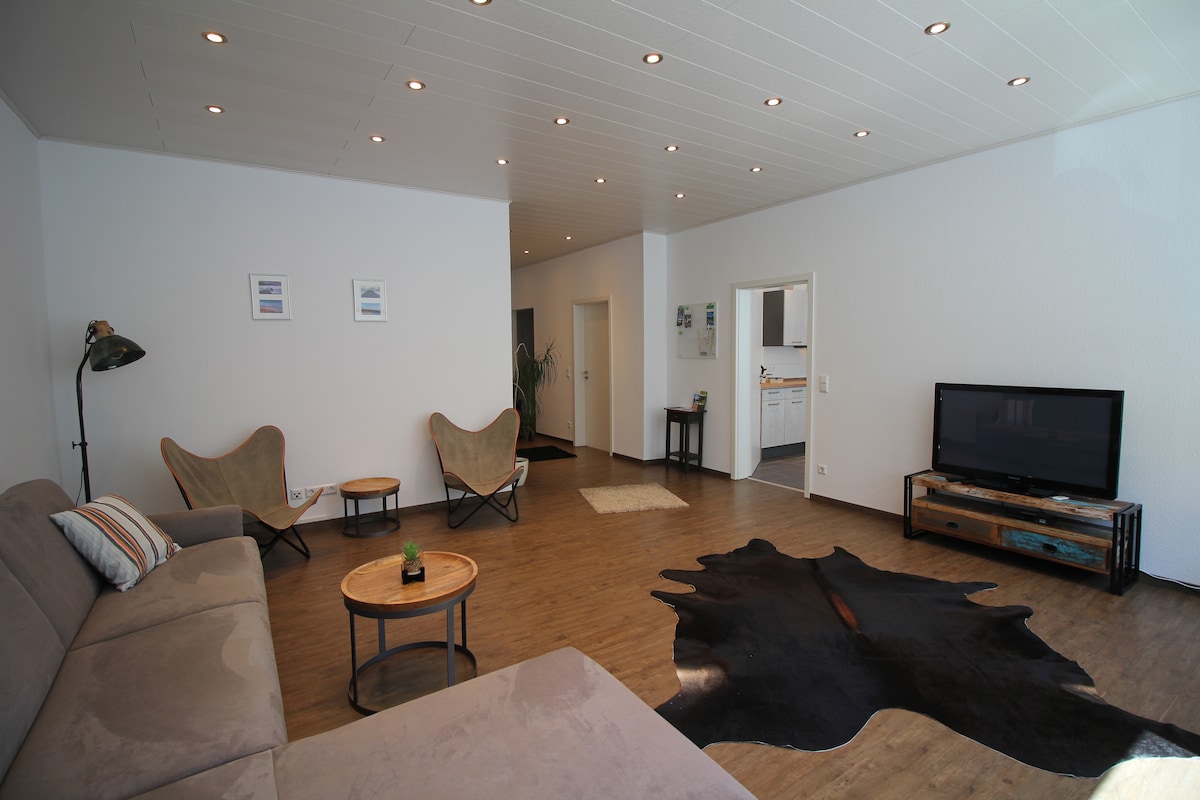 中心部に位置するスタイリッシュなロフトで、コブレンツのベストを体験してください。 チェスターフィールドソファで広々としたリビングエリアでリラックス テーブルサッカーを楽しむ。 設備の充実したキッチンで調理し、ダイニングテーブルの周りに集まって忘れられない食事を。 家族や友人グループに最適なこのお部屋は、モダンな快適さと古典的な魅力を融合させます。