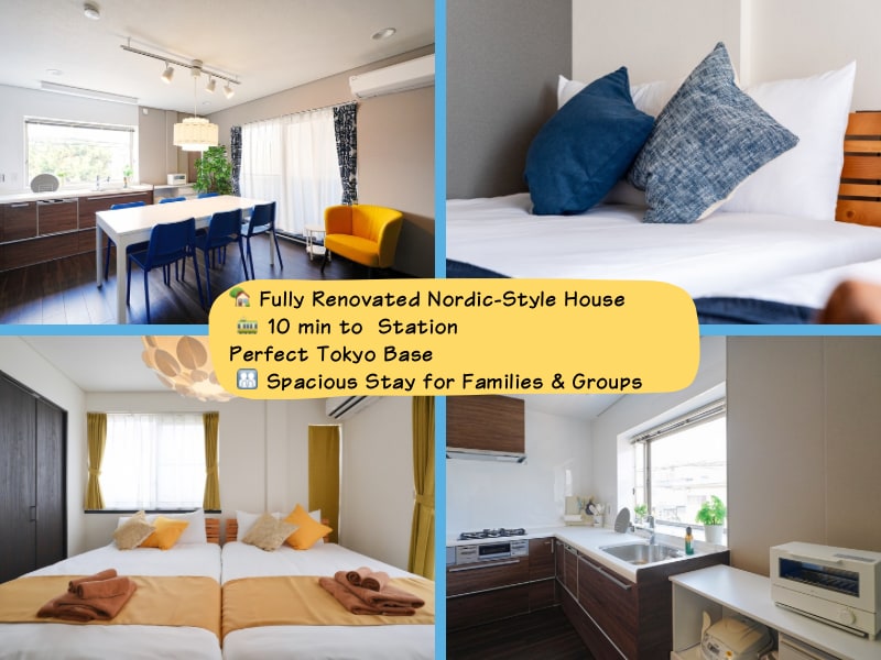 歡迎入住我們位於東京「小岩站」日本居民房屋民宿,步行仅6分钟到JR小岩站,直达新宿/东京/秋叶原,宽敞客厅,适合家庭、亲子和小团体旅行。 全空間位於一樓,無需爬樓梯,長輩、小孩皆可安心入住。 🛏️ 房間配置(共 3 間臥室,可入住約 6~8 人) 臥房1:雙人床 1 張 臥房2:單人床 2 張 臥房3:單人床 2 張 客廳:沙發床 1 張(另可提供床墊,彈性加床) 🛁 衛浴設備 一間乾濕分離浴室,附有自動浴缸 一間獨立廁所,配備免治馬桶 🛋️ 公共空間與設施 客廳一間,可供休息、交流 廚房與餐廳為開放式設計,配備冰箱、微波爐、瓦斯爐與基本廚具 免費提供浴巾、盥洗用品、吹風機與洗衣機 🚉 交通位置 交通便利: • 🚆 JR小岩站步行6分钟 • ✈️ 直达成田/羽田机场巴士 • 🚶♂️ 周边便利店、超市、餐厅步行3分钟