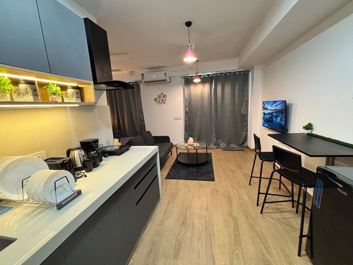 こちらの静かでおしゃれなお部屋で、のんびりとおくつろぎください。空港からわずか1.2 kmに位置するこのモダンな5階のワンルームマンションは、360平方フィートのスマートでスタイリッシュな生活を提供します。 完全セルフチェックイン&カップル歓迎! ご質問がございましたら、DMでお問い合わせください。精一杯お答えいたします!
