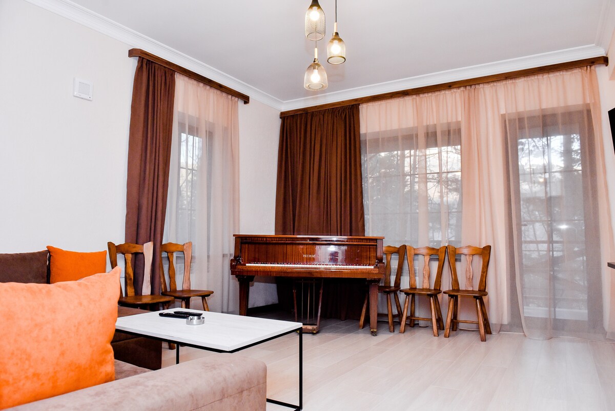 広々とした2ベッドルームのアパートメントで、質の高い休暇に必要なものがすべて揃っています。 整形外科用マットレスがぐっすり眠るのに役立ち、大きなテラスはリラックスして周囲の自然を楽しむことができる場所となります。 プールへの入場は有料です!1人5000 AMD、7歳未満のお子様は無料です。料金には2つのサウナ(フィンランド式とハマム)が含まれています。女性は水着なしで入ることは禁止されています!