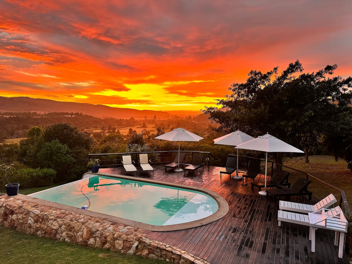 Be enticed by the awakening of your senses. Smell the sweet scent of the flowers and fynbos, the serenade of the frogs, the sight of colorful birds, taste the aroma of fruits and veggies from our vegetable garden and orchard. Ideal for a couple or a couple with a child (not suitable for 3 adults). Mountain, garden, pond (filled with rainfall, season dependent. Not just a room in someone's house or sharing common areas. Your own little piece of tranquility. Our dogs roam freely in the property.