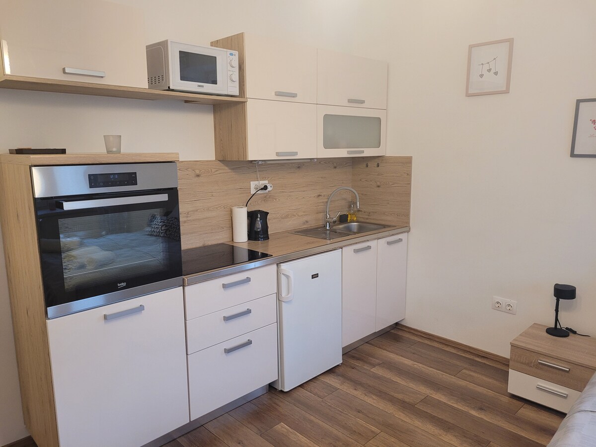 ペーチの中心部から徒歩ですぐの、静かでフレンドリーなエリアにある、魅力的なアパートへようこそ。2つの独立した部屋と明るいアメリカスタイルのキッチンリビングエリアがあり、本当に家庭的な雰囲気を味わえます。キッチンとバスルームは両方とも設備が整っています。玄関の専用駐車スペース、高速Wi-Fi、素敵な小さな中庭がすべて揃っており、快適にお過ごしいただけます。