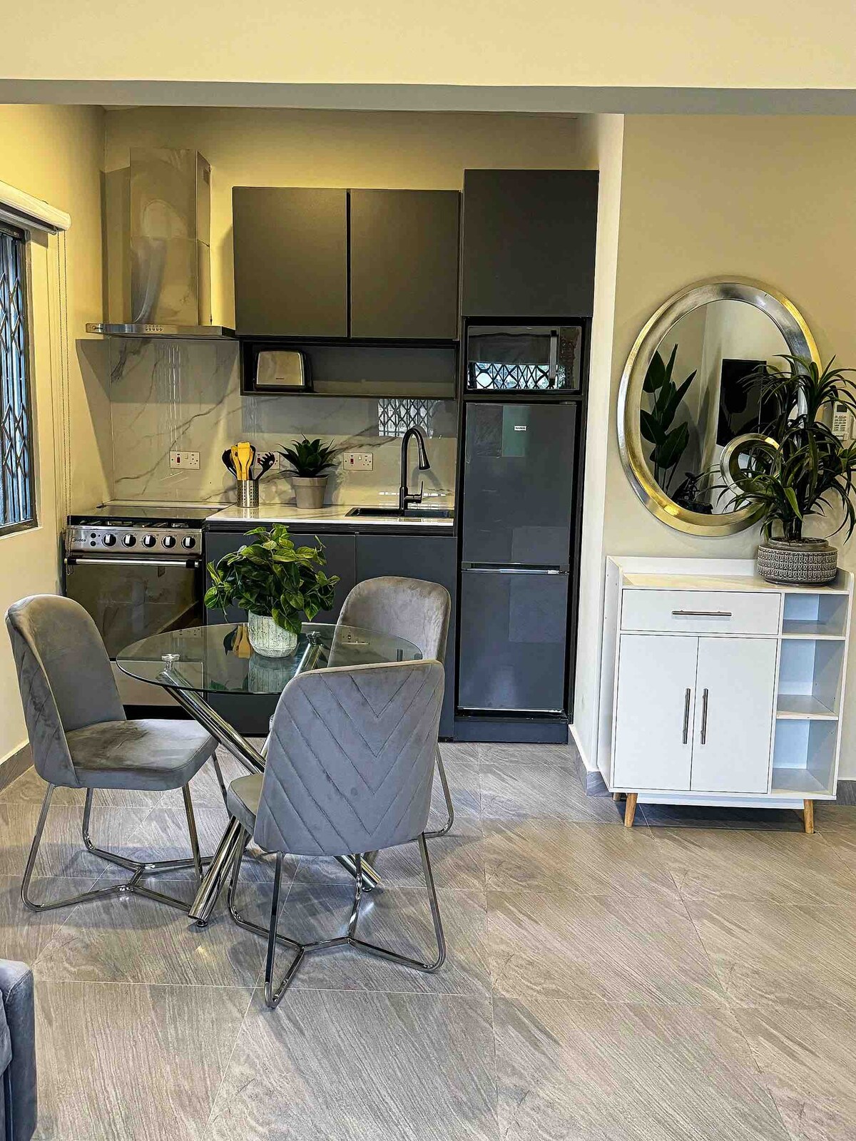 アクラで最も安全で人気のあるエリアのひとつ、キャントンメントにあるゲスト専用の1ベッドルームのゲストハウスへようこそ。このモダンなリゾートには、クイーンベッドを備えた明るい寝室、スマートテレビを備えた居心地の良いリビングエリア、お湯を備えた洗練されたバスルーム、設備の整った簡易キッチンがあります。エアコン、信頼性の高い高速Wi-Fi、24時間365日対応のセキュリティで、快適さと安心感の両方をお楽しみいただけます。大使館、レストラン、モール、コトカ空港からわずか数分です。