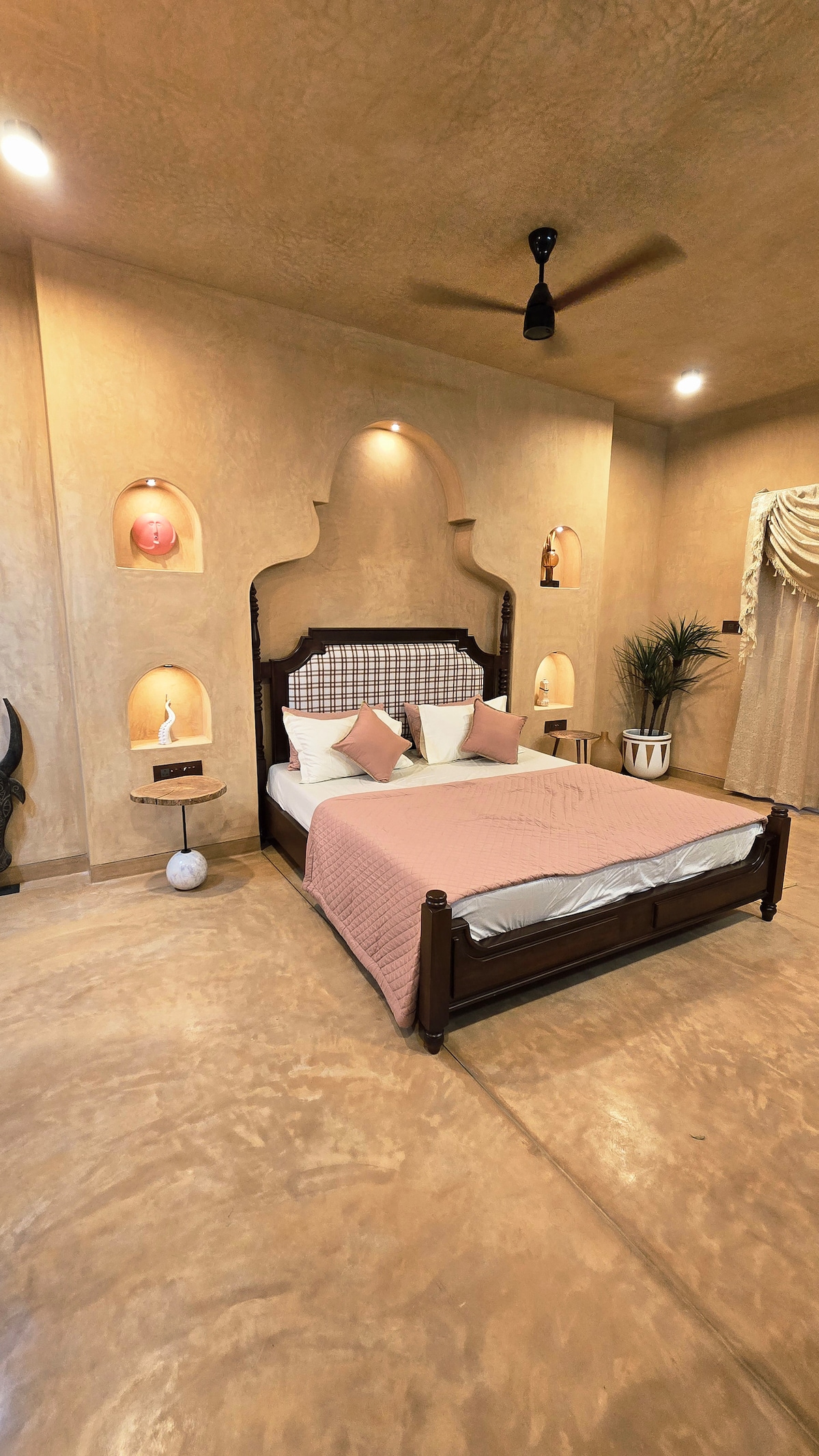 活気あふれる都会の庭園にある、環境に優しい土のコテージでくつろぎましょう。著名な建築雑誌に掲載されたこともあるこの建物は、土、粘土、藁を使った伝統的な「ワッテル・アンド・ダウブ」技術で建てられており、構造要素には竹を使用しています。夏でも涼しく快適です。ガーデンシティのベンガルールでは他に類を見ない、真にユニークな体験ができるこの宿泊施設は、持続可能性の典型であり、家庭生活と自然の境界線を曖昧にします。空港から30分未満。