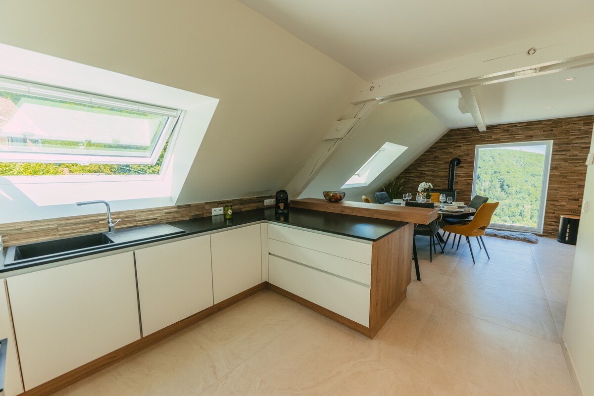 Bienvenue Là-haut 🌸 Maison atypique et paisible à Lautenbach, en Alsace, pour une véritable parenthèse hors du temps. Allongez-vous sur le filet suspendu pour lire ou observer les étoiles, profitez d’une sieste dans le hamac, partagez un repas face à la vallée depuis la terrasse privée et détendez-vous dans une salle de bain imaginée comme une grotte. Un lieu unique entre nature et douceur. Dépaysement garanti ✨