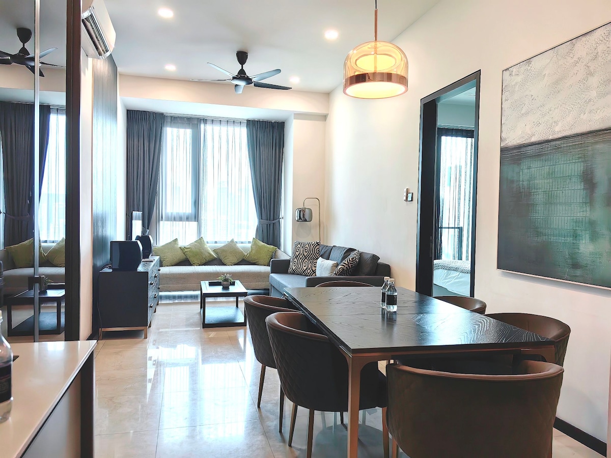 こちらの静かでおしゃれなお部屋で、のんびりとおくつろぎください。ルセンシア・レジデンスのオーキッド2BRスイートを選ぶ理由: クアラルンプールの最高の眺め -楽しい雰囲気で美しく装飾されています 中心部に位置し、公共交通機関のハブに接続されています。 高速Wi-Fi - Netflixなどが見られるテレビ2台 - 2つの豪華なプール - 赤ちゃん用ベッドとハイチェアを備えたファミリー向け - ジム、ビリヤード台、バーベキューグリル、ピアノ ガレージ駐車場 - おすすめ宿泊人数5名、最大6名 - ララポートショッピングモールとワオエンターテイメントストリートが隣接 - 食料品店、ドラッグストア、映画館など