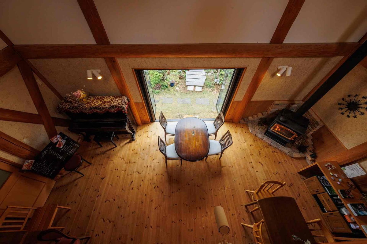 山の中の木造の家で、敷地は1000坪あり、自由に散策を楽しんでいただけます。敷地内には小さな川があり、宿泊していただく家の隣にはすてきな古民家もありワークショップなどにも利用していただけます。 自然がいっぱいの山暮らしが体験はいかがですか? バーベキューの道具も用意しています。(着火剤と炭はご持参ください) 季節により菜の花やわらびなどの山菜も取れますし、梅の木もあります。お採り頂いてもかまいません。 夏も市内に比べると温度が数度低いので快適だと思います。 携帯はほぼ繋がりますが、時間帯や天気により通信状況が違う場合もあります。お使いの携帯会社によっては繋がらないこともありますのであらかじめご了承ください。(この通信会社は繋がるか?という質問には素人ですのでお答えできません)数年前まで電波の届かなかったところです。ご了承ください。 備え付けのwi-fiはありません エアコンはありますが、自然の空気を楽しんでいただきたいのと省エネの観点から一階のみとなります。扇風機はございます。 暖炉はありますが、5月からは暖かくなるため薪のご用意はございません。