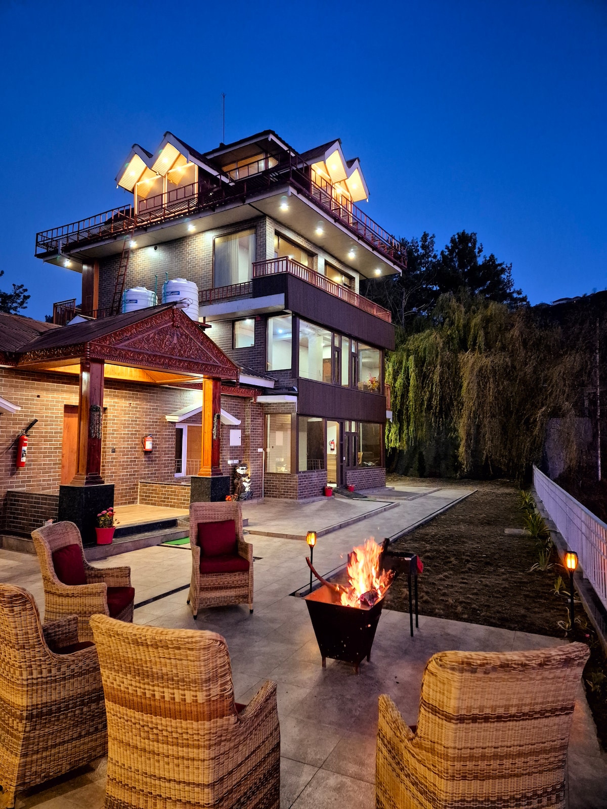 ナーカンダ市場からわずか15分の静かな3部屋の隠れ家、Boonies Apple Orchard Villaに逃避行しましょう。道沿いには雄大なデオダールの木が立ち並び、静かな自然を感じることができます。各客室には専用バスルームが備わっており、素晴らしい山の景色を眺めることができます。天窓から自然光を浴びて星空を眺めたり、バルコニーでリラックスしたり、ジャグジーでくつろいだりしましょう。ロマンチックな旅行や家族旅行に最適なこのヴィラは、快適さと自然の美しさが融合し、思い出に残る滞在をお楽しみいただけます。