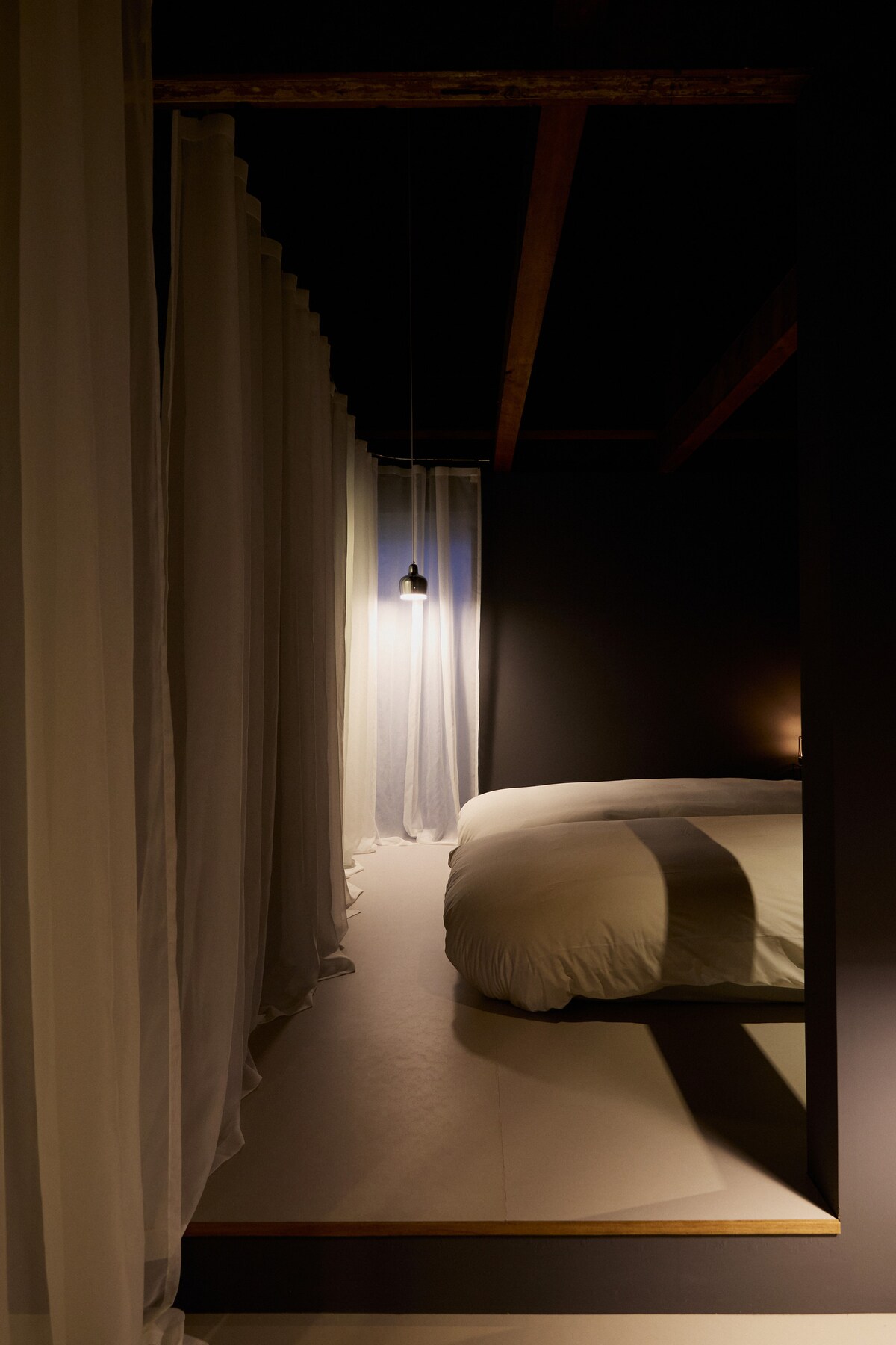二階建ての建物の二階にあるお部屋。 一階にエントランスとシャワールームがあり、玄関は別で飲食店があります。 旅行先の宿泊先としてのご利用はもちろんですが、この施設をゆっくり楽しんでいただけるよう、什器や空間の作り方を大切に考えました。 アイランドキッチンを備えたダイニングでは、上質なスピーカーによる音楽を楽しむことができます。 いまは希少な松のフローリングの香りと肌触りもお楽しみください。 寝室エリアについては、小さなお子様のことも考え、ベッドではなく厚みのあるお布団をご用意。また、お布団のエリアは畳の小上がりになっています。 宇野駅からもっとも近い宿泊施設のひとつで、直島などの離島へのアクセスも抜群。 コンビニ、人気の飲食店も近いです。 English available.