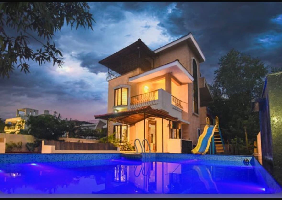 Escape to the brand-new Malhar Mist Villa, a luxurious 3 BHK private pool villa in Lonavala. This villa offers a peaceful escape with: >3 Airy Bedrooms with king-size beds >Attached Bathrooms with hot water & toiletries > 26ft x 12 ft Private Swimming Pool > Fully Equipped Kitchen > Large Living Room with 55inch Smart TV&Wi-Fi > Home cooked meals available from caretaker or restaurants > 8 hrs inverter backup Additional details : >Check-in: 2 PM | .Check-out: 11 AM IG- malhar_mist_villa