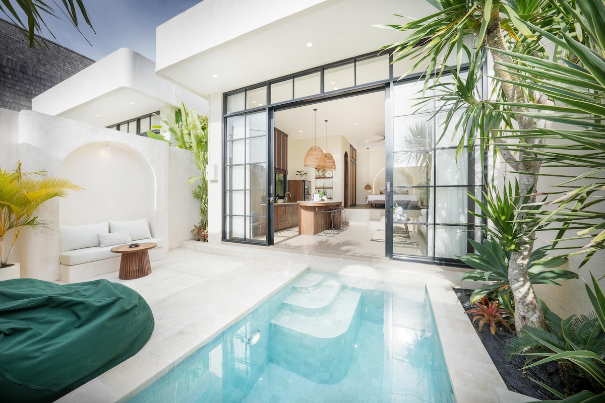 セミニャックの中心部にあるプライベートオアシスでリラックスしましょう!美しくデザインされたこの1ベッドルームのヴィラは、快適さ、スタイル、利便性を完璧に融合させています。ビーチまでわずか150メートル。数分でバリ島の太陽、サーフィン、砂浜を満喫できます。 ヴィラには、キングサイズのベッドを備えた広々としたエアコン付きの寝室、専用バスルームがあり、専用プールにも直接アクセスできます。1日観光した後にリラックスするのに最適です。