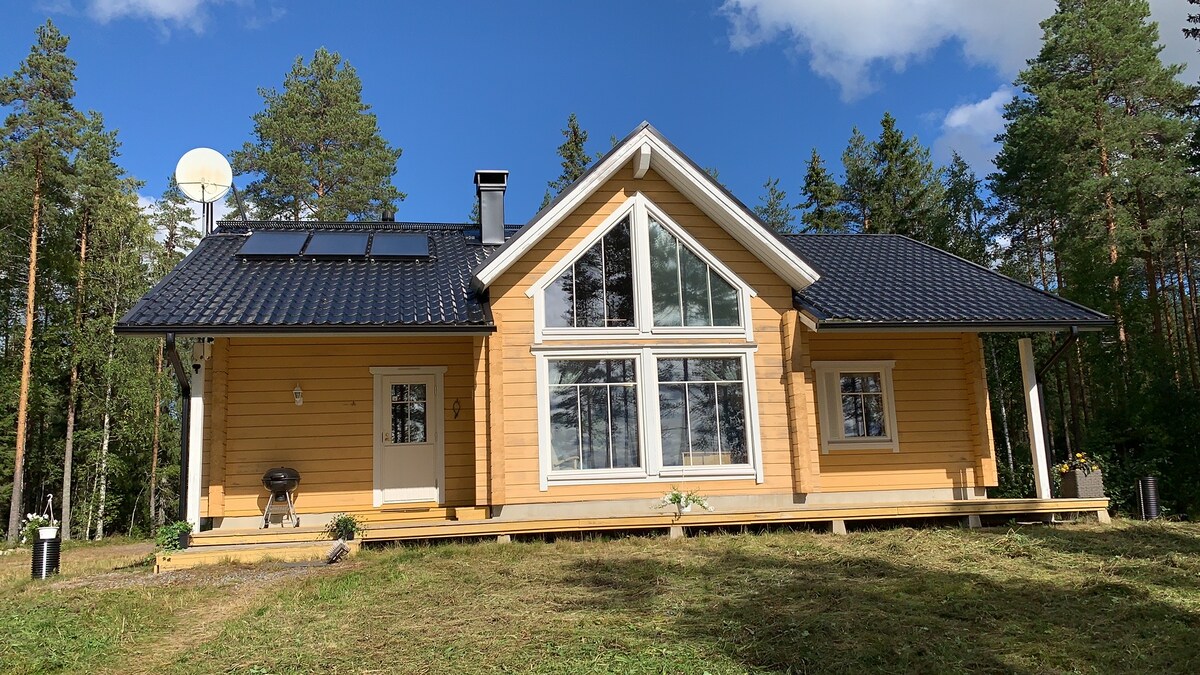 こちらの落ち着いた宿泊先で、ご家族一緒におくつろぎください。近くには、湖(200 m -子供に優しい)、ディスクゴルフ(400 m)、屋内スポーツ(1 km -バドミントン、ジム、水泳、卓球、テニスなど)、パデル(800 m)、ゴルフ(8 km)、クロスカントリースキー(150 m)、トレイルランニング(150 m)など、たくさんのアクティビティがあります。 周辺は静かで、お互いに配慮し合っているので、安心してご滞在いただけます。 追記:400 mbのインターネットと家の中にはたくさんのボードゲームがあります。 **大人数グループの場合は、隣の家を予約できます。