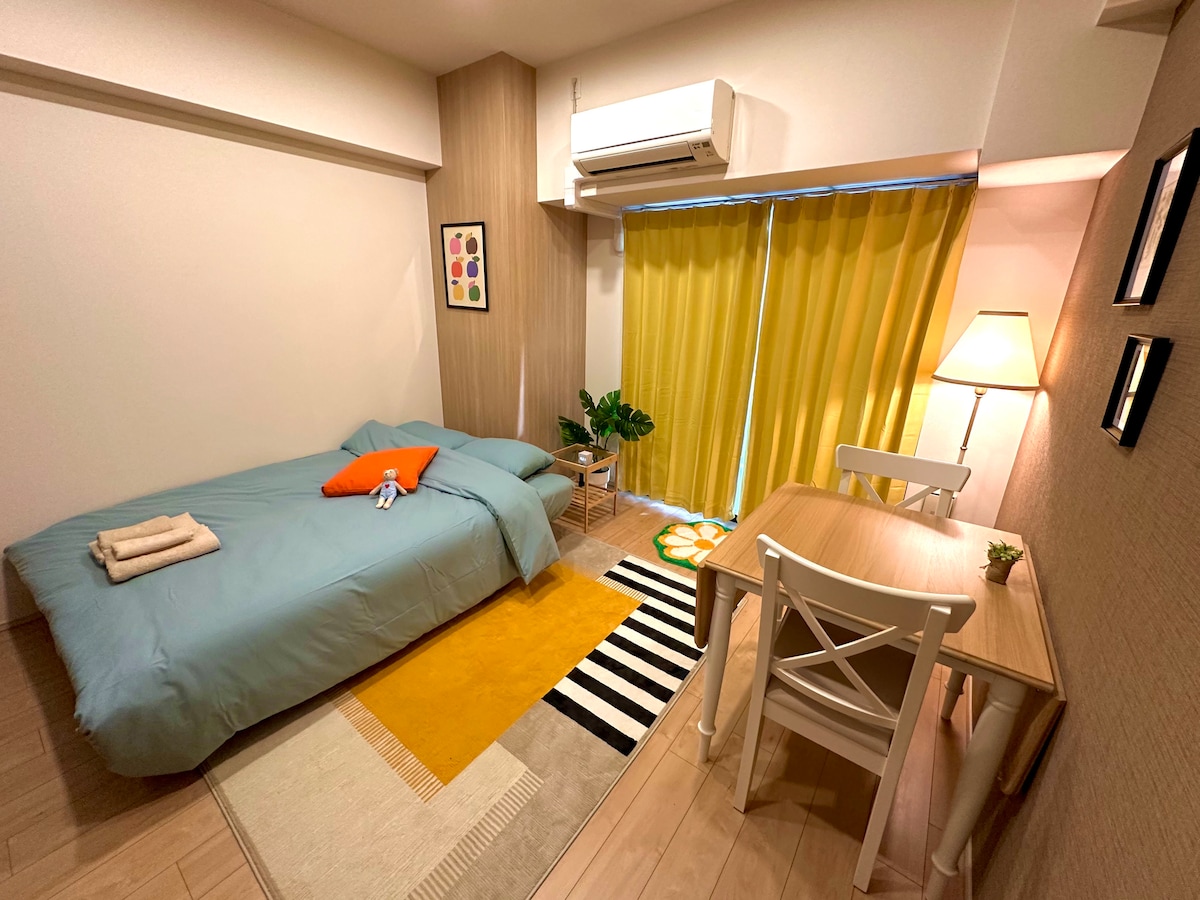 1LDK28.8㎡のデザイナーズルームです。 阪神なんば線&大阪メトロ中央線の九条駅まで徒歩4分、そこから難波駅まで阪神電車で3駅7分、関西空港までも乗換1回の105分。 ユニバーサルスタジオジャパンまでは阪神九条駅より1回乗り換えで21分。京セラドーム大阪までは徒歩15分で着きます。 大阪観光の中心地、ミナミへのアクセスが良く、観光の拠点として最適です。 ナインモール九条商店街はじめいくつかの商店街からも近く、お食事・お買い物・観光と大阪をお楽しみいただける立地です。 お部屋は有名デザイナーによってデザインされ、居心地の良い空間となっております。 ◆特徴 -閑静な住宅街にあるデザイナーズルーム -1LDKで最大4名宿泊可能 -徒歩1分圏内にスーパーとコンビニ -調理道具完備 -完全貸し切り -セルフチェックインシステム -無料洗濯機(無料の洗濯用洗剤付) -充実のアメニティ(シャンプー、コンデショナー、ボディソープ、バスタオル、スリッパ、歯ブラシ、コットン、綿棒、髭剃り) -日本語・英語・中国語OK -高速WiFI完備