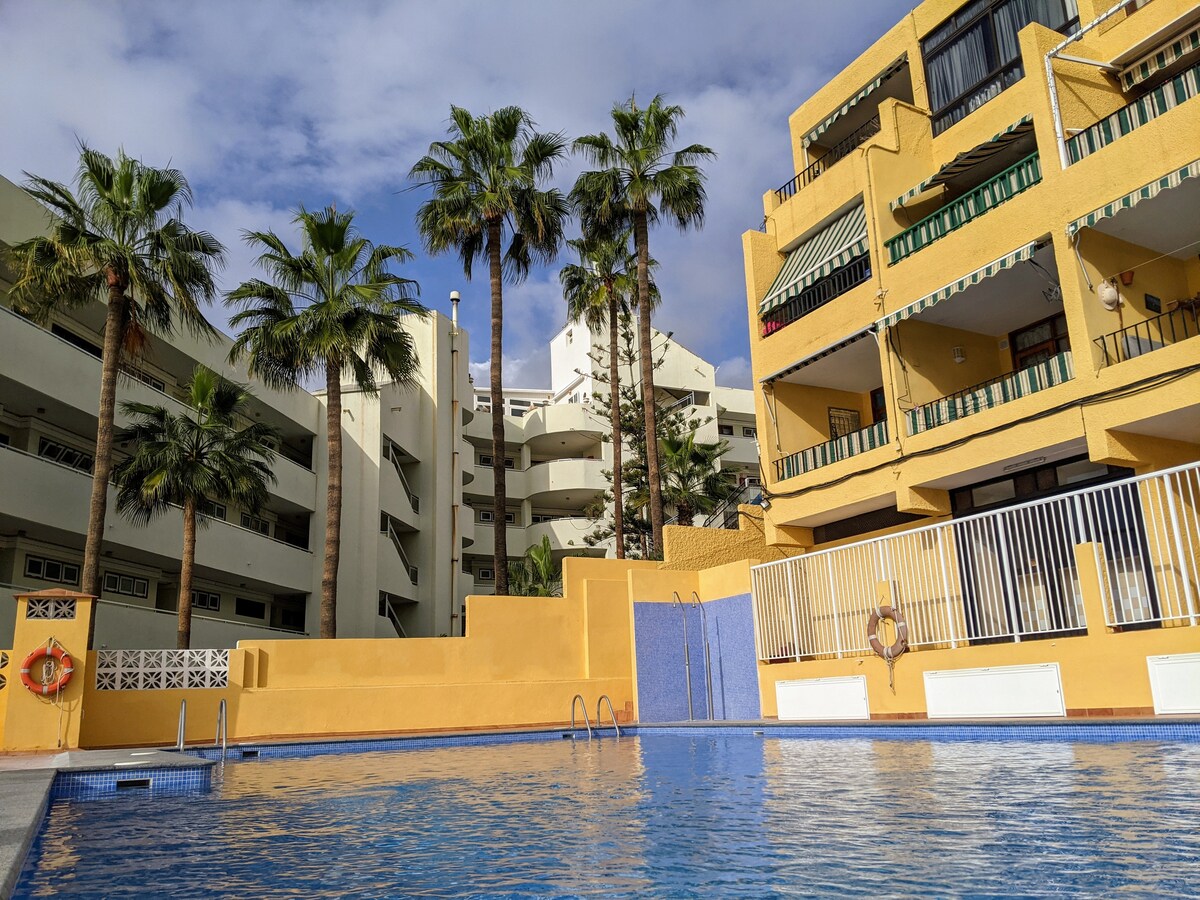 Apartamento Luminoso,Sol todo el día, NO AIRE CONDICIONADO, un dormitorio ,cama 180 cm y un sofá cama,un baño ,cocina con lo necesario,2 piscinas comunitarias una para niños , a pocos minutos de la playa y piscinas o charcos naturales en los Gigantes y Alcalá con un paseo por la orilla del mar. A 30 min del aeropuerto Sur y 60 del aeropuerto Norte, cerca de los acantilados de los Gigantes y su playa de los Guios a 30 min caminando y supermercado (Superdino Jardines )a una calle del edificio