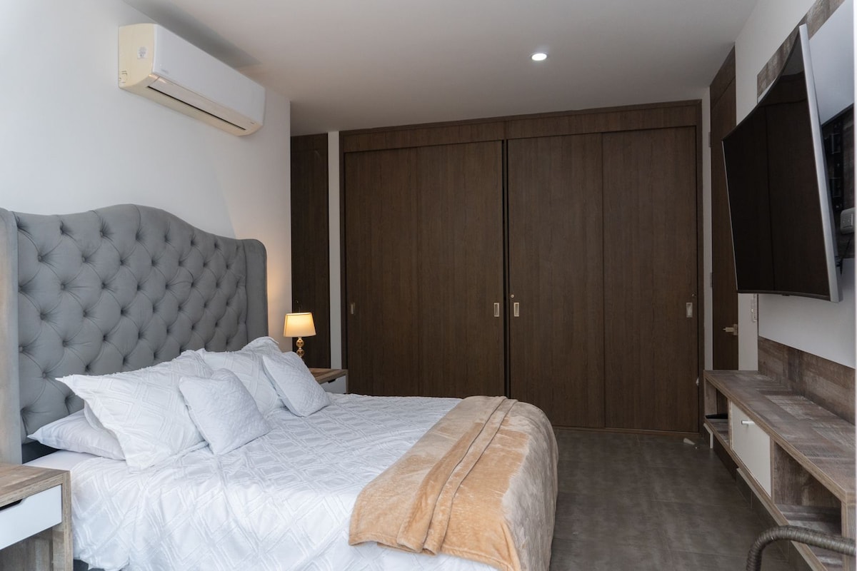 Vive la experiencia de despertar frente al mar en un apartamento elegante y acogedor. Con cama King, amplios ventanales y jacuzzi en la azotea, es ideal para descansar y disfrutar del clima caribeño. A pocos pasos de la playa y a 10 minutos del casco antiguo, combina lujo, comodidad y una ubicación perfecta para explorar Cartagena.