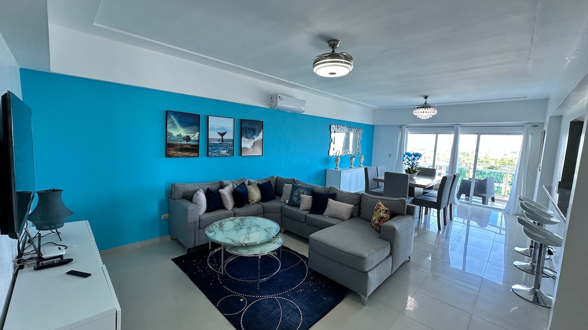 Disfruta de esta relajante experiencia en nuestro apartamento frente al mar, rodeado de amplios espacios de recreación y tranquilidad, este apto es el lugar perfecto para quienes bucan comodidad y belleza en su próximo destino frente al mar. Podrás tener acceso a la playa de Juan Dolió a 5 min caminando. Áreas comunes: • Piscina • Jacuzzi • Lobby • Gazebo • Cancha de voleibol A 10-15 minutos en coche del Malecón, Jumbo, el estadio de béisbol Tetelo Vargas y la Zona Franca.