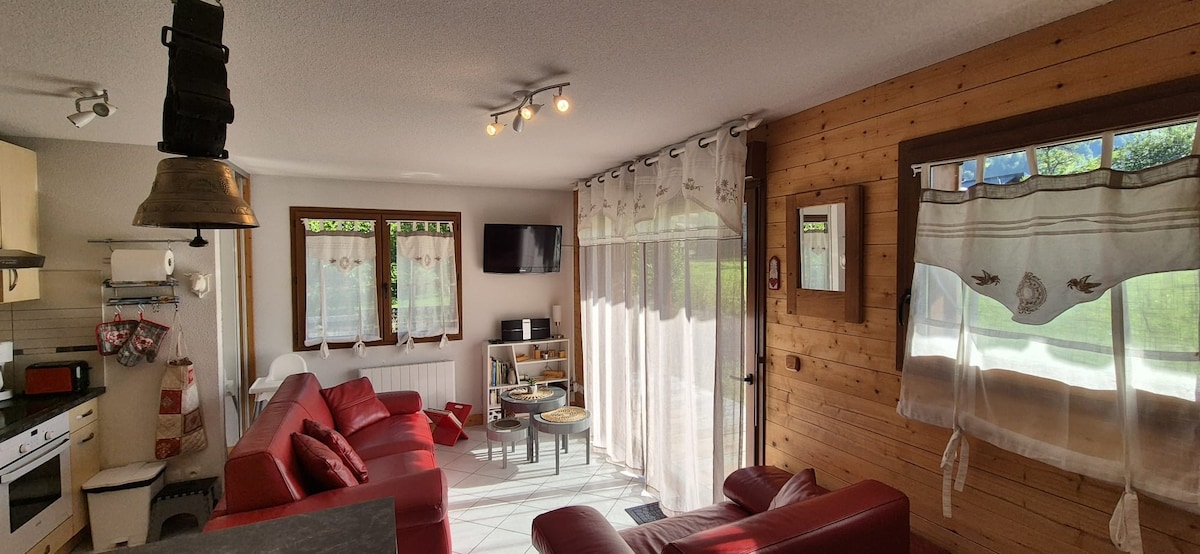 この居心地の良い宿泊施設でリラックスしてください。 モン・ド・グランジュの麓にあり、クロスカントリースキーのコースや多くのハイキングコースがあります。ポルト・デュ・ソレイユ(Portes du soleil)スキー場のスキーリフトのすぐ近くにあります。南向きの私たちのアパートにはバルコニーと暖炉があります。どの季節でも理想的です。 バー付きのリビングに面したキッチンは、広々とした居心地の良い空間です。バルコニーに面したベッドコーナーも快適です。 忘れられない滞在のために必要なものはすべて揃っています。