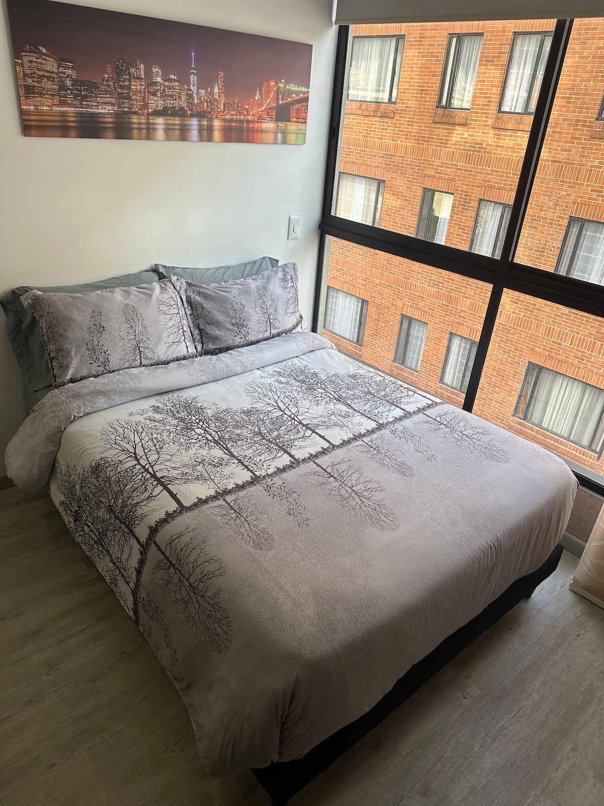 Bright and modern private apartment with a cozy living room, fully equipped kitchen, spacious Queen bedroom and WiFi. Relax in a quiet neighborhood, just minutes from TransMilenio, parks and supermarkets. Numero de Registro Nacional de Turismo No 114067