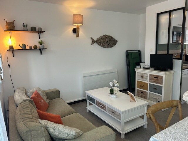 2021年6月に全面改装された31平方メートルのとても素敵な1LDKで、中心地から300メートル、ビーチから300メートルの静かな住宅の1階にあります。大型テレビ、Canal+、設備の整ったキッチン、18 cmのマットレスを備えた160 cmのソファベッド、ダイニングエリア、サンラウンジャー、植物などを備えた15 m ²の南向きの専用中庭があり、快適に過ごせます。 自転車(新品ではありませんが、整備済み)をご用意しています。