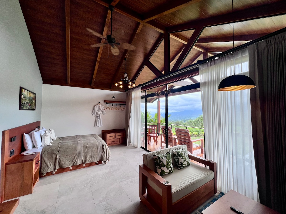 Relájate en este espacio tan tranquilo y elegante. A 1 km del centro de Fortuna y a 300 m del Salto. Camino a la catarata de la Fortuna. El loft cuenta con terraza deck, piscina, jardín, un cuarto con cama king, baño, cocina totalmente equipada, centro de lavado, parqueo privado, AC, acabados de lujo, vistas extraordinarias hacia el volcán y en contacto con la montaña, ideal para citas románticas, relajarse y pasarla bien lejos del bullicio de la ciudad, pero a solo 2 min del centro de Fortuna.