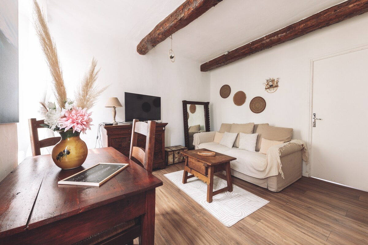 Appartement traversant entièrement rénové situé au premier étage d’une vieille maison de village. D’une superficie de 32 m2 idéal pour un couple aimant l’histoire et les monuments, la nature et les randonnées... À vingt mètres de la rue piétonne et de ses commerces ,restaurants, cafés,supérette….. Piscine communale à l’entrée du village . Grimaud ,Cogolin se trouvent à 15 mn, les plages sont à 25mn . Profiter de la campagne tout en étant proche du golfe de Saint-Tropez.