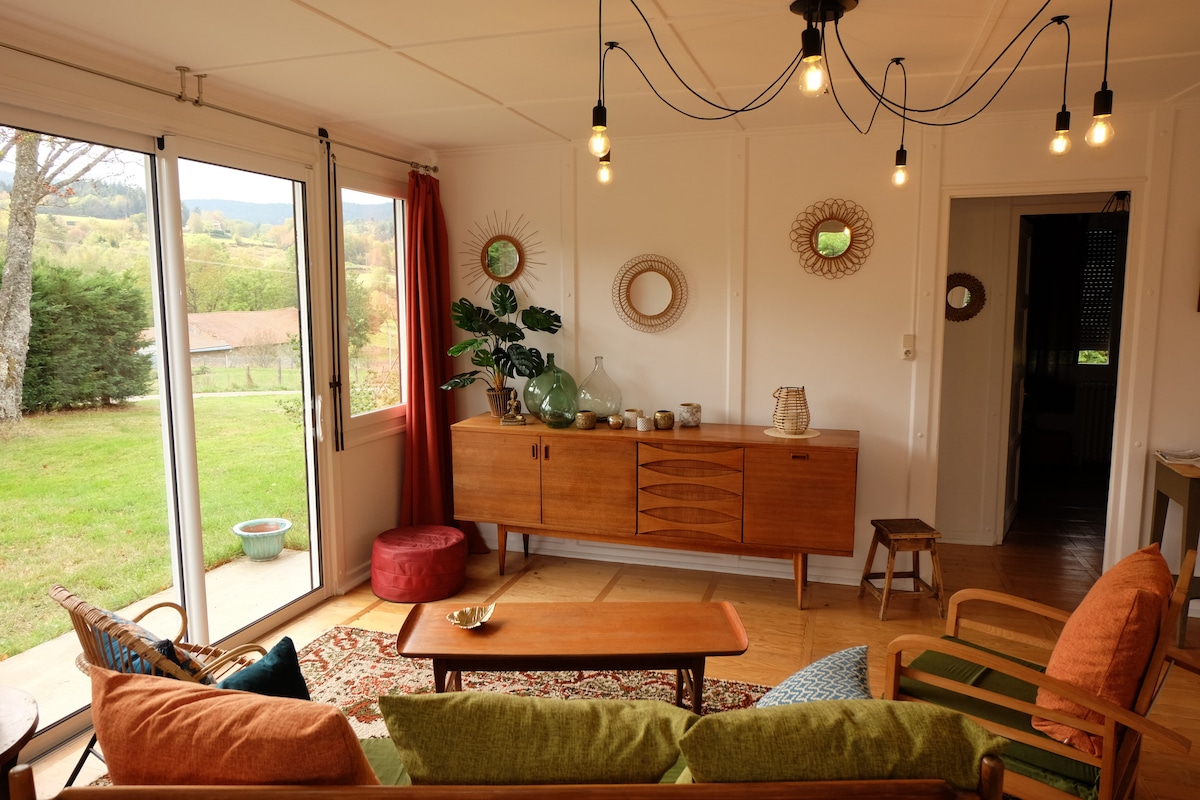 The house is a recently built and welcoming chalet. You will enjoy a region ideal for hiking or discovering a rich local heritage. Located in a peaceful hamlet, you will be welcomed by Sam and Krisha, our friends and English neighbors. At 10 minutes from the highway (A89), between Lyon and Clermont-Ferrand, the house can welcome 4 adults or a family with two children properly. The breathtaking view invited us to built this house, we want to share it with you...