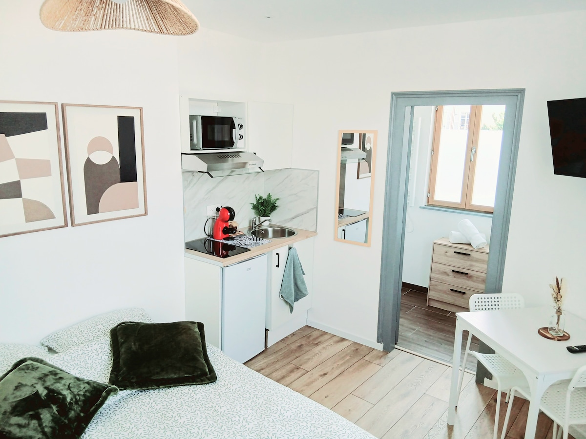 旧市街(マリーヌ地区)の中心部に位置する静かで居心地の良い小さな家で、向かいに住む人がいない地中海スタイルの庭があります。 木繊維の断熱材とヒートポンプ(エアコン)により夏も冬も快適で、徒歩で街を散策するのに最適な出発点です。近くには、ショップ、レストラン、バー、劇場があります。 無料駐車場まで5分、有料駐車場まで2分(1時間無料)。 駅まで徒歩15分。