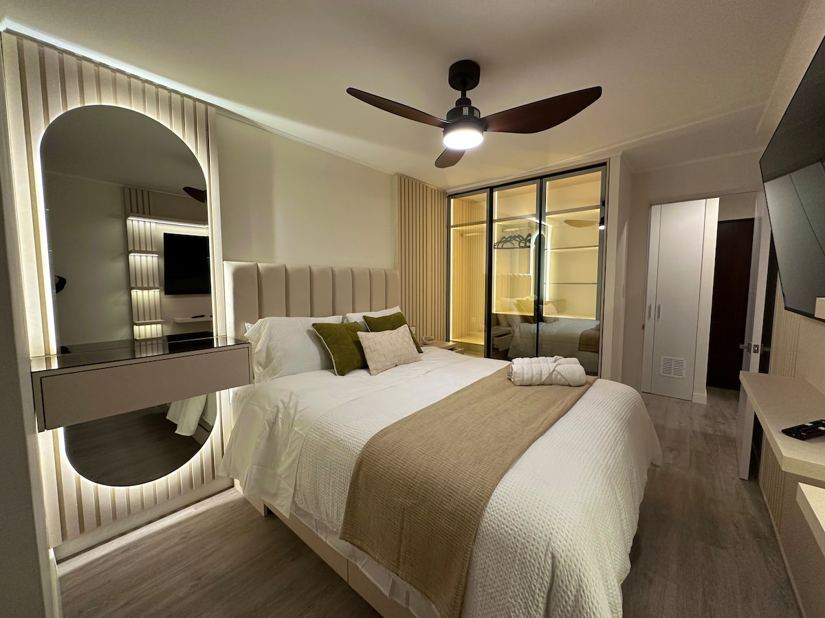 バランコとの境界線にあるチョリリョスの美しいアパートは、リマの全地区を巡るメトロポリタン交通機関にアクセスできるマテリーニ駅から5分です。 快適な滞在に必要なものはすべて揃っています。リビングルームとキッチン、クイーンベッド付きの寝室、75インチテレビ、ゲスト用バスルームとメインバスルーム、仕事や勉強、素敵な休暇を過ごすのに理想的な書斎があります。