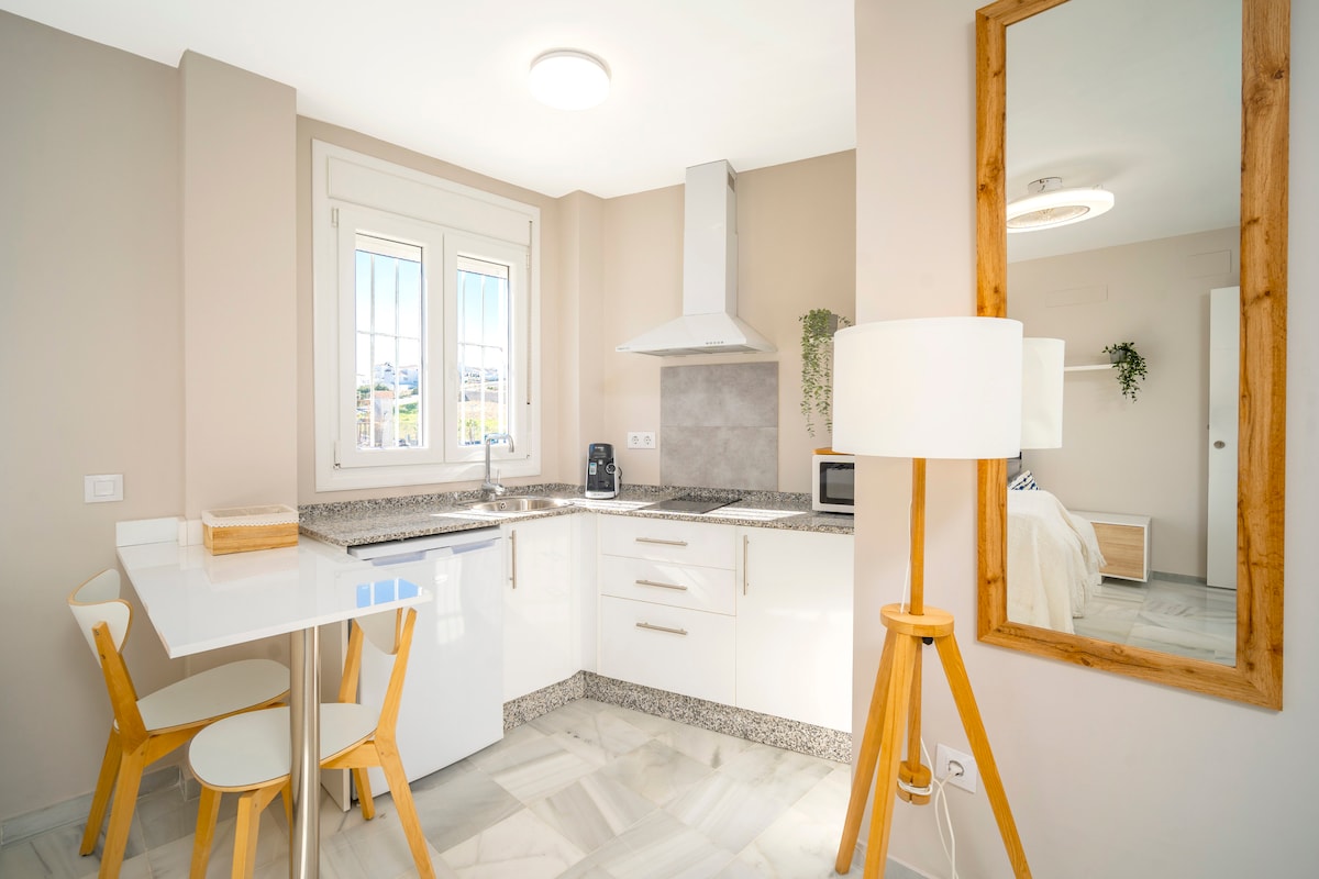 コニル・デ・ラ・フロンテラの高品質なワンルームマンション。 一室、完全装備、改装済み。 素晴らしいロケーション:ビーチから徒歩5分、中心部から2分の場所にある、歴史的な町の中心部。