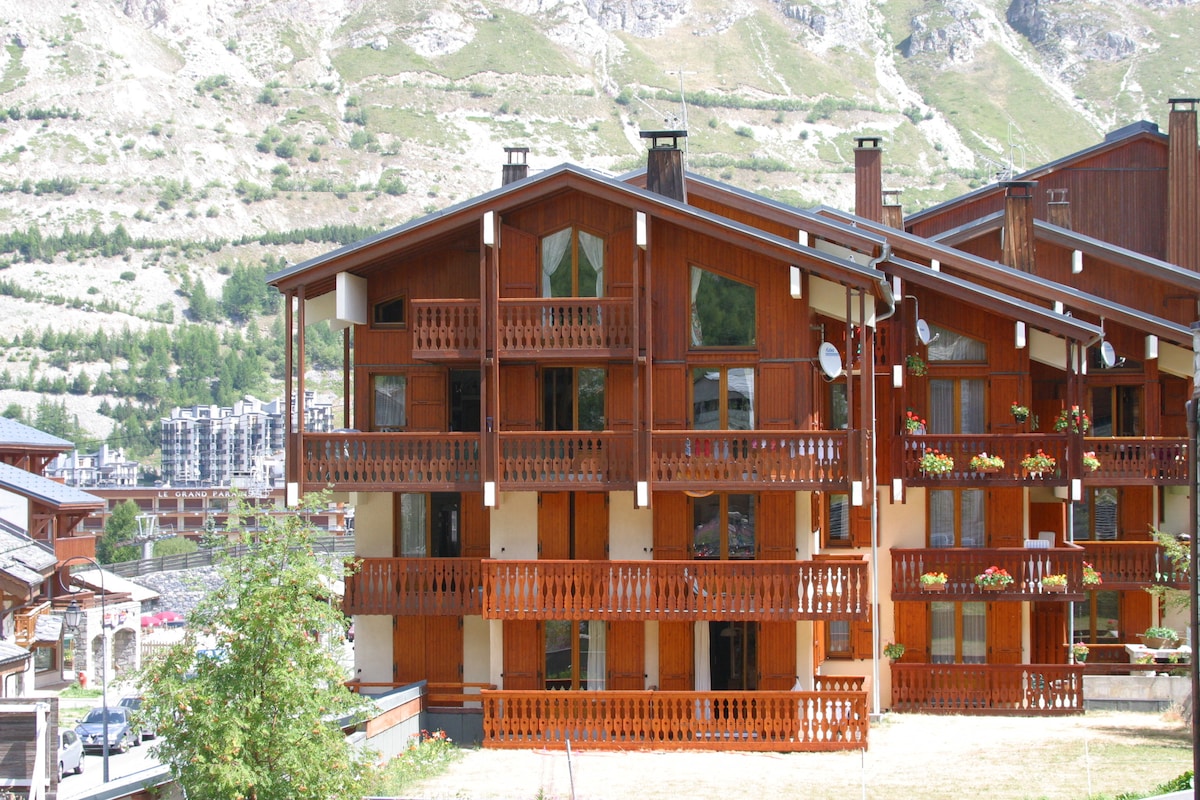 ヴァルディゼール(レ・オー・デュ・ロゴネイ)の30平方メートルの2部屋のアパート スキーインストール ベルヴァルドと古い村の素晴らしい景色 ダイニングエリア付きのリビングルーム - ソファーベッド(ベッド140cm) 寝室(ベッド160cm) バスタブ付きバスルーム トイレ 屋根付き駐車場 Wi-Fi、テレビ、セラミックコンロ、オーブン、電子レンジ、食器洗い機、洗濯機、トースター、ネスプレッソマシン、アイロンとアイロン台、掃除機、ヘアドライヤー、ラクレット、フォンデュ、そり、ユーナー、ゲームなど。