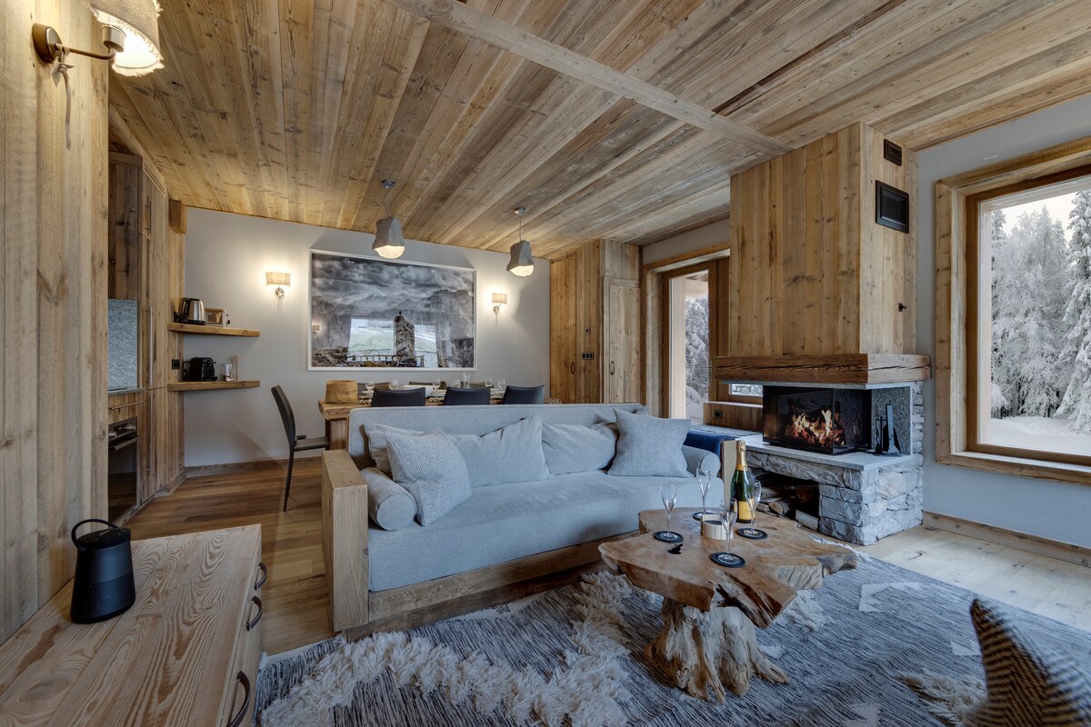 テラス付きの110平方メートルの壮大で豪華なアパートシャレー。 下の階にある広々とした寝室3部屋をご利用いただけます。 アパートは新しく、「Le Laisinant」スロープの端にあるので理想的です。 バス停から200m、中心部のすべてのショップから徒歩5分、スキーリフトへのアクセスがあります。 帰りはスキーで行います。 駐車場とアパートに直接アクセスできる閉鎖ボックスには2台分の駐車スペースがあります。