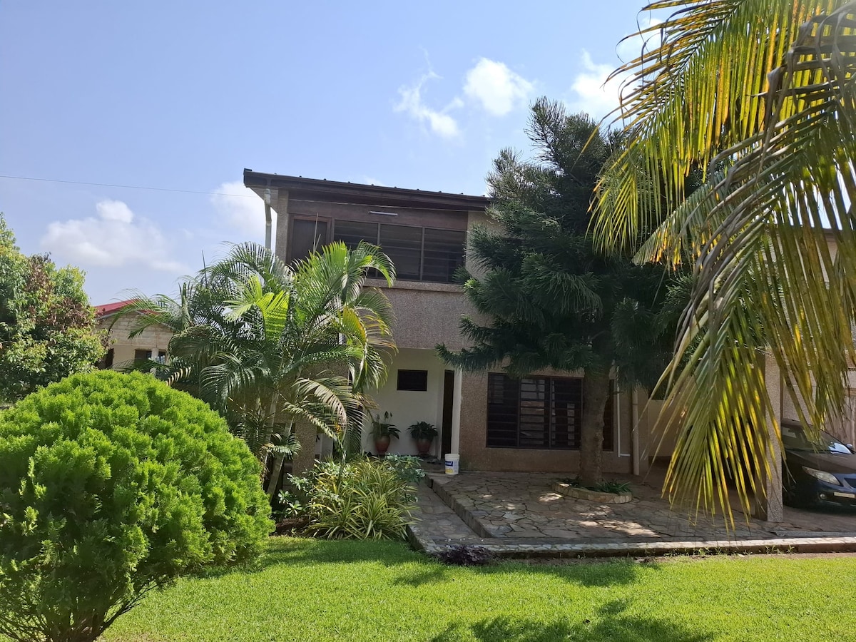 自宅から離れて旅しよう。 穏やかで、穏やかで、風が吹いています。 きっと気に入るでしょう。Nududu RestaurantとPolice Postまで徒歩3分。Banks、Laundry Outlets、Barbering Salonsも利用可能なメインジャンクションまで徒歩5 ~ 8分。KFC、Tayiba & Papayeレストラン、Pizza Outlet & Legon Botanical Gardenまで車で6分。Atomic Junctionまで車で11分で、レストラン、スーパーマーケット、ブティック、薬局、ガーナ大学がたくさんあります。 このユニークな宿泊先でガーナを探索しましょう。