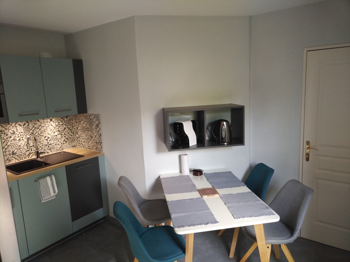 個性的な36平方メートルのエレガントなアパートをお楽しみください! パート・デューの中心部に位置し、リヨンポール・ボキューズのホールからすぐ、駅から徒歩5分です。 エレベーターのない3階にあります(体型を維持するため)。 パーティーは固く禁じられています🚫!