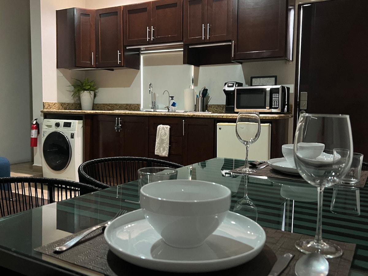 Disfruta de la comodidad y la excelente ubicación de estudio. A pocos pasos de la playa, restaurantes, súper mercados, cine paradas de autobús, etcétera. A pocos 5 minutos de la playa A 7 minutos del hermoso malecón. Cuenta con una cama queen size, baño equipado, wifi, refrigerador, microondas entre otras amenidades escenciales para tu estancia.
