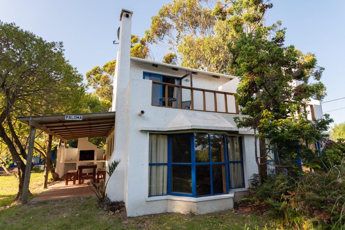 Hermosa cabaña a 4 cuadras de la playa, orientada al norte en el Océano Atlántico. Dos dormitorios, uno tipo estudio abierto al espacio en entrepiso y un cuarto debajo, ideal para parejas. Cuenta con estufa de alto rendimiento. Cama de dos plazas y cama marinera con dos colchones de una plaza.