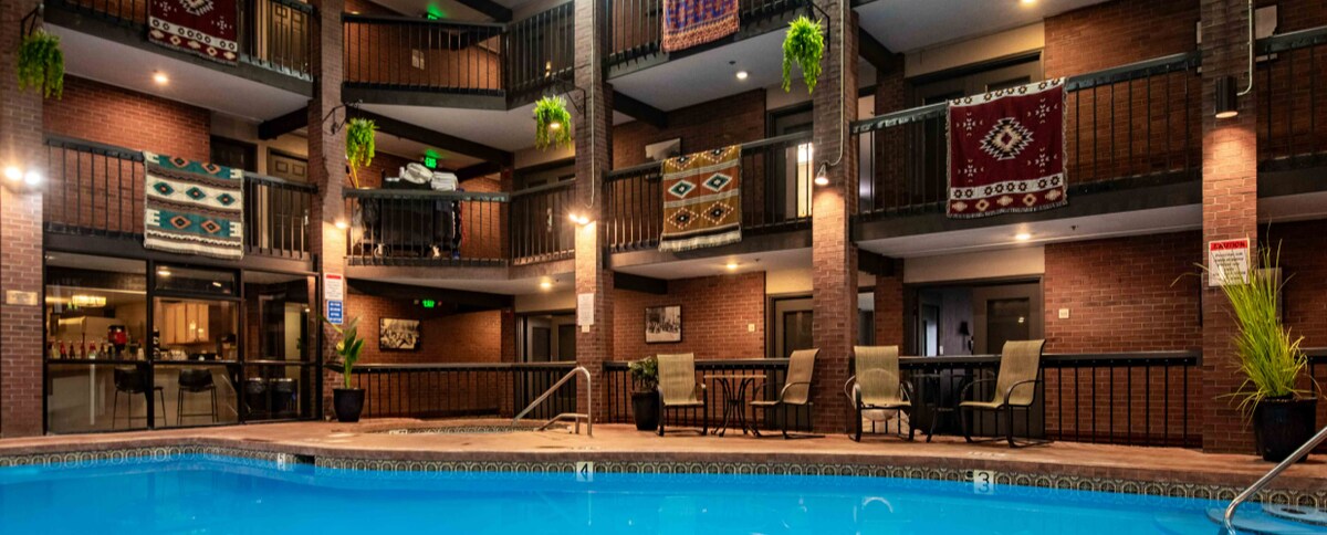 ドゥランゴの風光明媚な山々に囲まれた魅力的なリゾートには、快適な1ベッドルームスイート、フルキッチン、魅力的なリビングスペース、専用バルコニーがあります。屋外のホットタブで息をのむような景色を眺めながらリラックスしたり、ゲームルームを楽しんだりできます。近くのスキー場やハイキングコース、歴史的なダウンタウンのアトラクションを探索しましょう。キャッシュレスリゾートと1泊12ドルの駐車場を備えたこの宿泊施設では、手軽に快適な時間を過ごし、忘れられない冒険と真の山の魅力を満喫できます。
