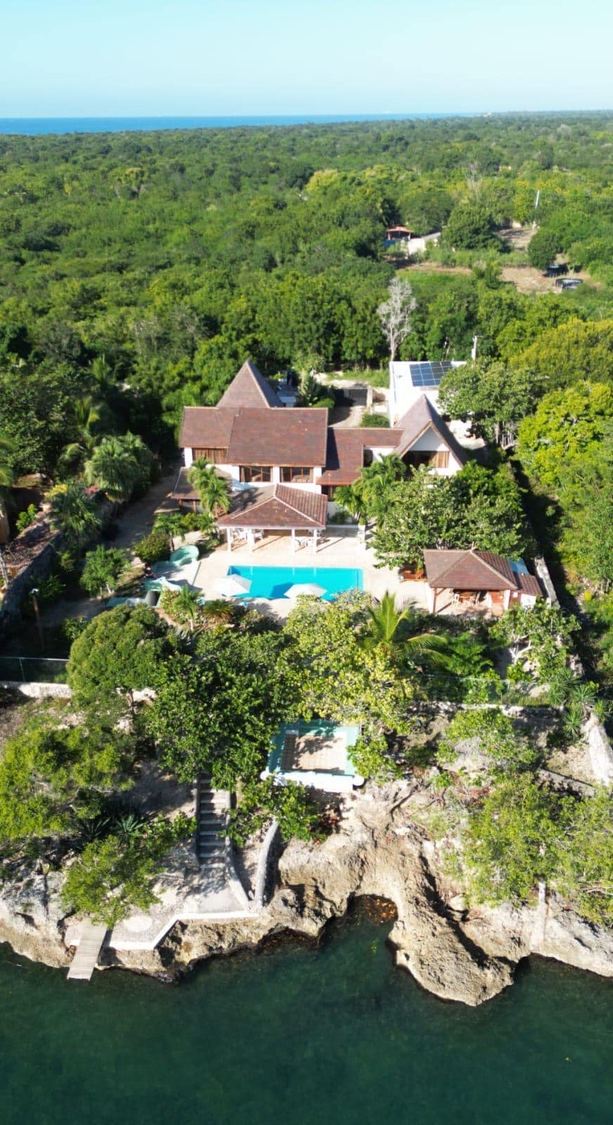 Villa Río Mar Cumayasa – Entre Río y Mar es una propiedad privada ideal para familias grandes o grupos que buscan tranquilidad y confort en un entorno natural. La villa principal cuenta con 4 dormitorios, cada uno con su baño privado, áreas sociales amplias y una cocina integrada al comedor y la sala. Dispone de una piscina privada de agua salada, un gran patio rodeado de palmas y estacionamiento. Además, incluye una casita independiente con 3 dormitorios y sus baños.