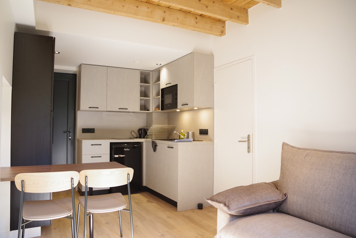 Studio lumineux entièrement refait à neuf ! ☀️ Logement à deux pas de la gare, proche de l'hyper-centre et de toutes les commodités. Immeuble avec ascenseur, calme, récemment rénové et totalement sécurisé. Entièrement équipé : lit queen size, machine à laver, lave vaisselle, machine à café, four, bouilloire, grille pain, sèche cheveux, fer à repasser, ...