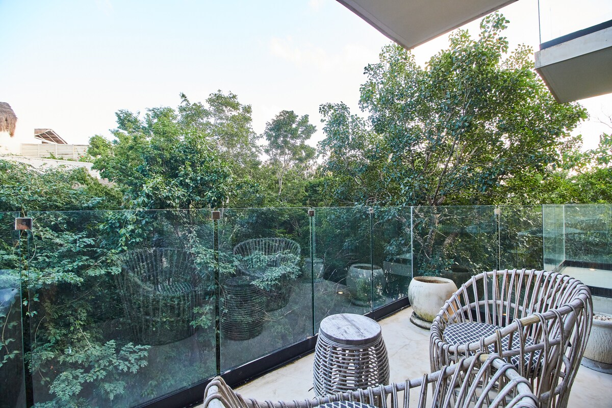 Escape to your private oasis with a furnished patio overlooking a tropical Garden, relax by the hammock, or take a dip in the complex private Cenote This home offers a magical vacation experience for up to 4 people. Book now for your dream getaway Our building has positioned among the top 3 developments to stay for short and mid-stay renters. It has a 3-level building dedicated to amenities like Pool Games, a Co-working area, Spa, Gym, Jacuzzis, Hamam(subject to availability), and a Rooftop